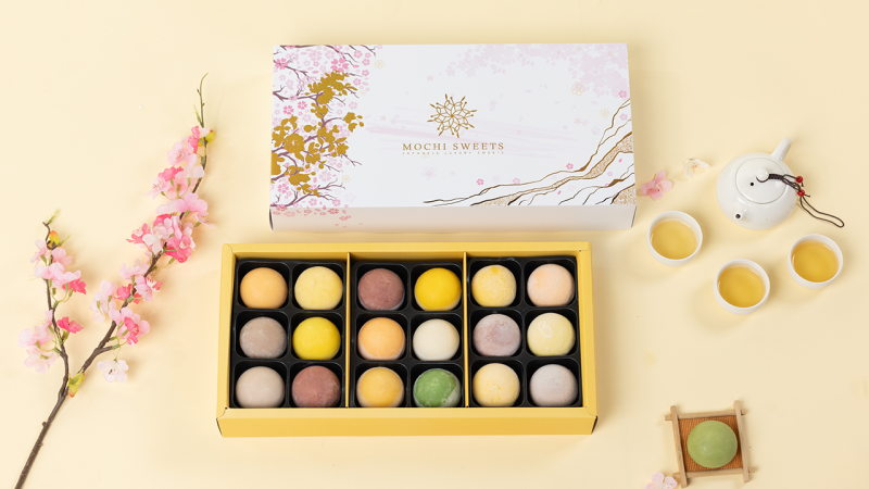 – 18 bánh mochi tuỳ chọn.
